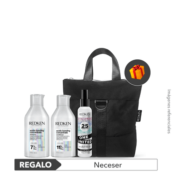 Pack incluye: Shampoo Acidic Bonding Concentrate 300ml + Acondicionador Acidic Bonding Concentrate 300ml + Tratamiento en spray One United 150ml + REGALO Neceser. Los productos incluidos en el pack no son intercambiables. Imágenes referenciales.