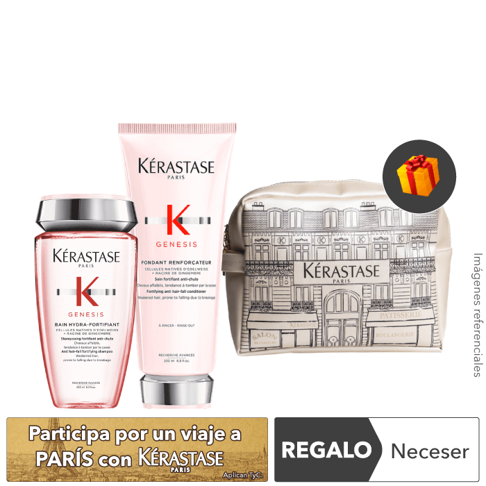 Pack incluye: Shampoo Hydra-Fortifiant 250ml + Acondicionador Genesis 200ml + REGALO Neceser. Los productos incluidos en el pack no son intercambiables. Imagen referencial.