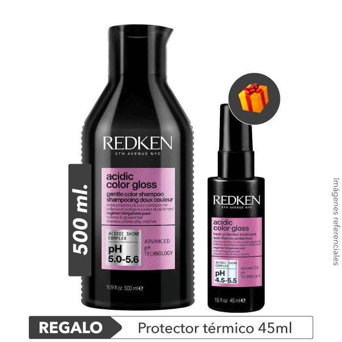 Pack incluye: Shampoo Acidic Color Gloss 500ml + REGALO Protector Térmico 45ml. Los productos incluidos en el pack no son intercambiables. Imágenes referenciales.