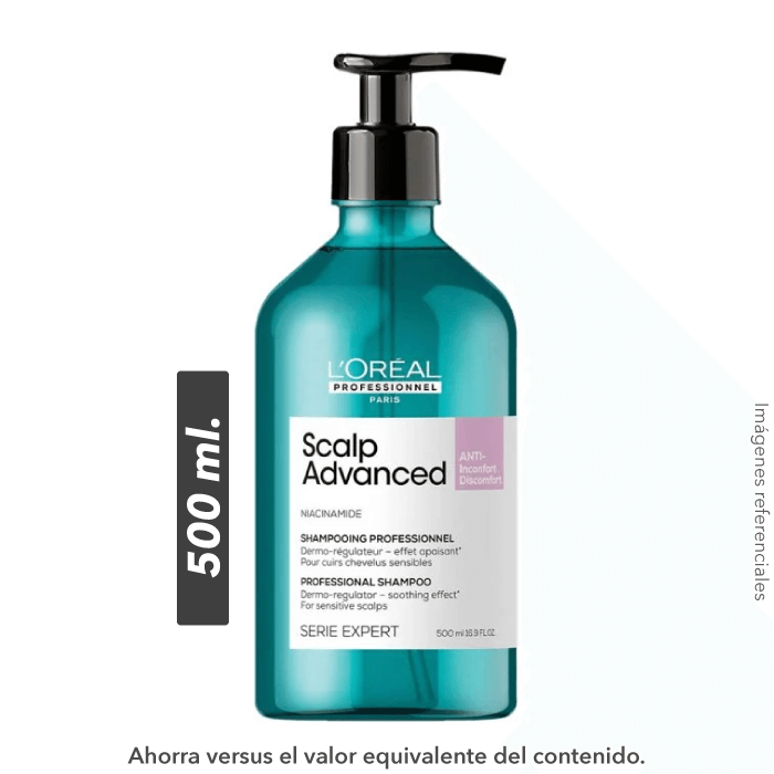 El Shampoo Anti-malestar Scalp Advanced de la marca profesional L'Oreal Professionnel, es un delicado shampoo que limpia con suavidad, a la vez que calma el cuero cabelludo sensible. El cabello queda suave, radiante e hidratado. Enriquecida con Niacinamida, una vitamina de la familia B3, conocida por sus propiedades reguladoras y calmantes.
