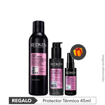 Pack incluye: Tratamiento Activador de Brillo Acidic Color Gloss 237ml + Aceite Naked Acidic Color Gloss 100ml + REGALO Protector Térmico 45ml. Los productos incluidos en el pack no son intercambiables. Imágenes referenciales.